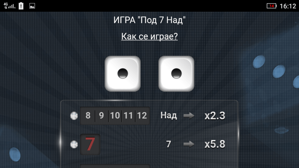 Ако броя на цифрите от зарове съответства на условието Над или Под, тогава залога се увеличава с 2.3 пъти. Това също е добра печалба като на практика залогът ви се удвоява.